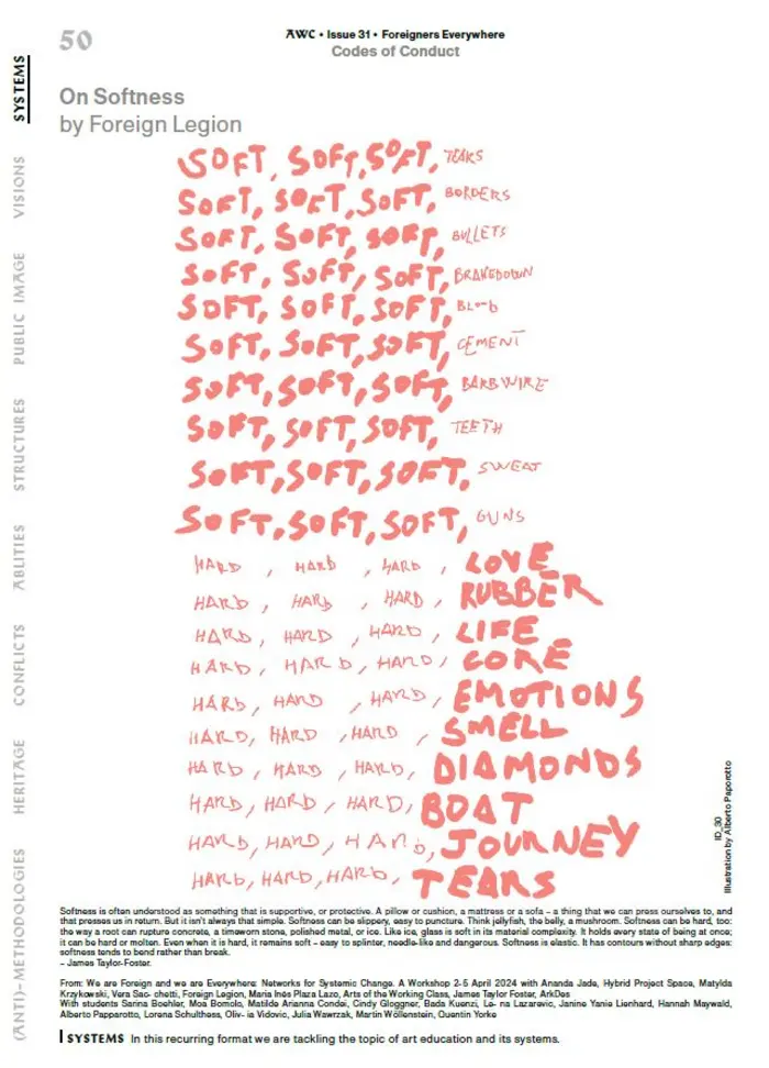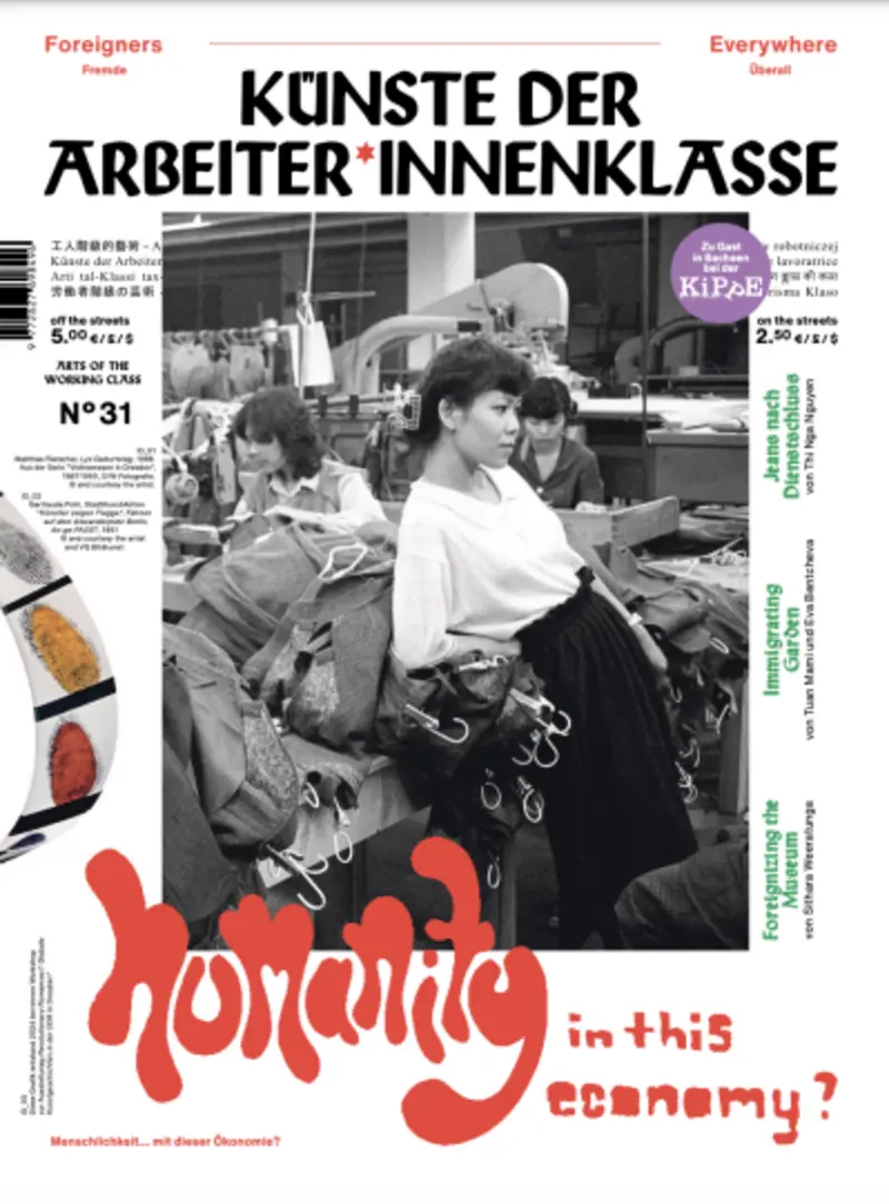 Die Ausgabe Nr. 31 Foreigners Everywhere der Straßenzeitung Arts of the Working Class ist in Zusammenarbeit mit der Abteilung Vermittlung, Outreach und Gesellschaft der Staatlichen Kunstsammlungen Dresden entstanden. Diese Ausgabe versammelt künstlerische Arbeiten und Stimmen, die mit Erfahrungen des Fremd- und Verbundenseins, insbesondere zu DDR-Zeiten, zu tun haben. Sie sind Beiträge von Museumsprojekten, die sich mit unterschiedlichen Aspekten einer global verflochtenen DDR beschäftigen. Dazu gehören: Revolutionary Romances im Dresdner Albertinum, die Transkulturelle Akademie im Japanischen Palais, der REINVENTING-Prozess des GRASSI Museum für Völkerkunde zu Leipzig, die Ausstellung VEB Museum im Deutschen Hygiene Museum Dresden, Re:connect. Kunst und Kampf im Bruderland im Museum der bildenden Künste Leipzig sowie Echos der Bruderländer im Haus der Kulturen der Welt in Berlin.